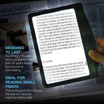 5X Large LED Full-Page Magnifier with Detachable Hands-Free Stand
