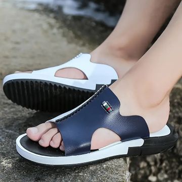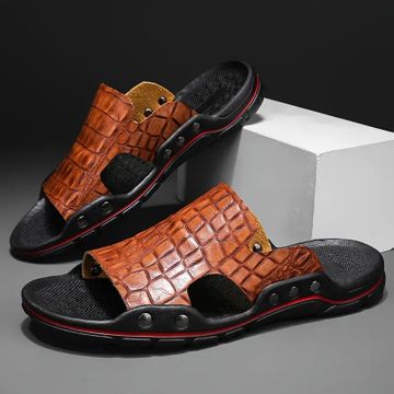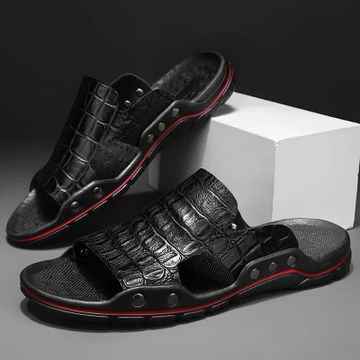 Men's Summer Slide Sandals - Non-Slip, Soft Sole, Faux Leather Beach Shoes