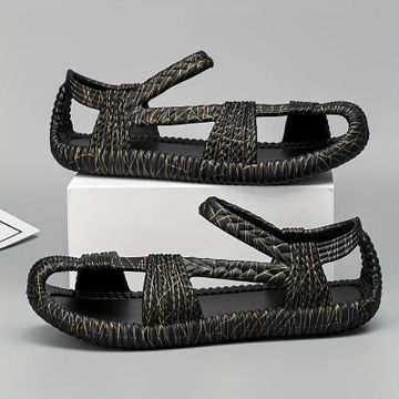 Men's Slip On Casual Woven Sandals, Fashionable Breathable Non-Slip Beach Shoes