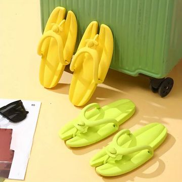 Casual Solid Color Disposable Portable Folding Slippers For Boys, Lightweight Non-slip Flip-flops