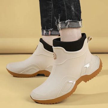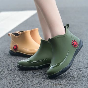 Fashionable Adult Short Rain Boots, Waterproof Ankle Shoes, Anti-Slip Durable Rubber Footwear