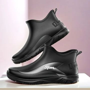 Men's Casual All-Season Short Rain Boots - Waterproof PVC Slip-On Shoes