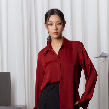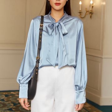 เสื้อเชิ้ต แขนยาว ซาติน ผูกโบว์ที่คอ (FT-015)