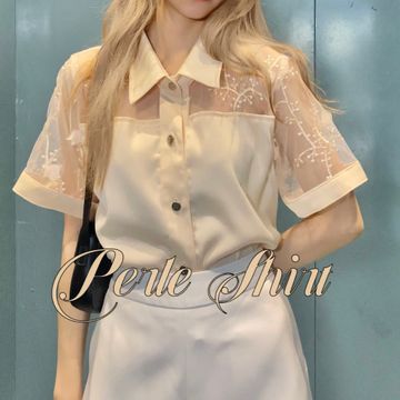 เสื้อตัดต่อบ่าหลัง ผ้าลูกไม้ แขนสั้น (FT-018)