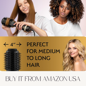 Professional Blowout Hair Dryer Brush, Black Gold Dryer and Volumizer, Hot Air Brush for Women, 75MM Oval Shape (Black Gold)