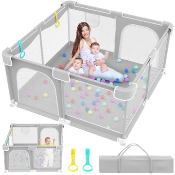 Baby Playpen, 50" X 50" Playpen for Babies and Toddlers, Indoor & Outdoor Kids Activity Center, Baby Play Pen Playard, Sturdy Safety Baby Play... Color:White Grey