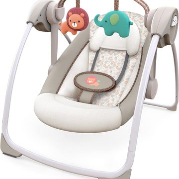 Ingenuity Soothe 'n Delight Compact Portable 6-Speed Plush Baby Swing with Music, Folds Easy, 0-9 Months 6-20 lbs