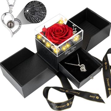 Preserved Red Real Rose with I Love You Necklace-Eternal Flowers Rose Gifts for Mom Grandma Wife