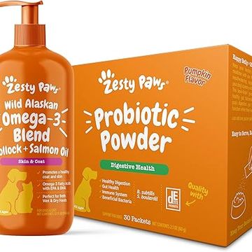 Zesty Paws Wild Alaskan Omega-3 Blend Pollock + Salmon Oil for Dogs + Probiotic Powder for Dogs