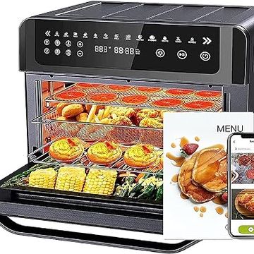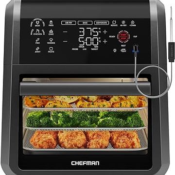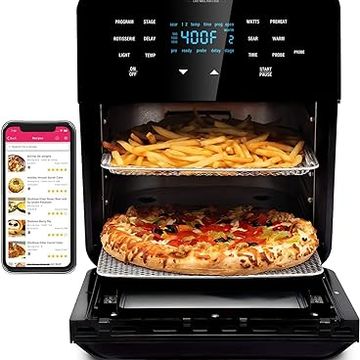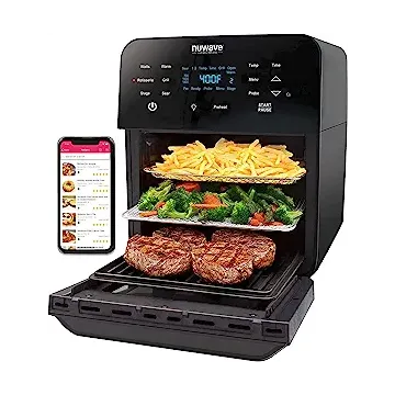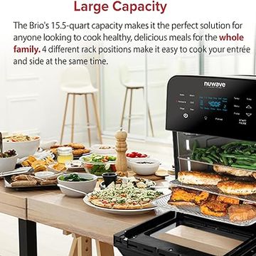 Nuwave Brio 15.5Qt Air Fryer Rotisserie Oven, X-Large Family Size, Powerful 1800W, 4 Rack Positions, 50°-425°F Temp Controls, 100 Presets & 50 Memory, Integrated Smart Thermometer, Linear T Technology