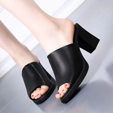 Women'S Fashion Fish Mouth Slippers, Solid Color High Heel Sandals, Summer Slip-on Open Toe