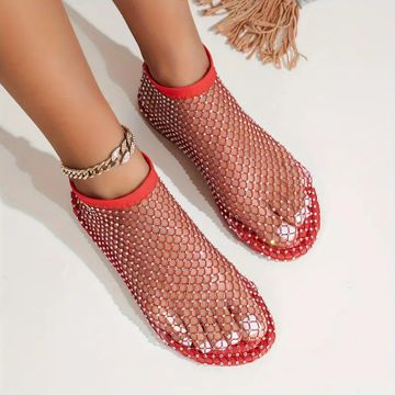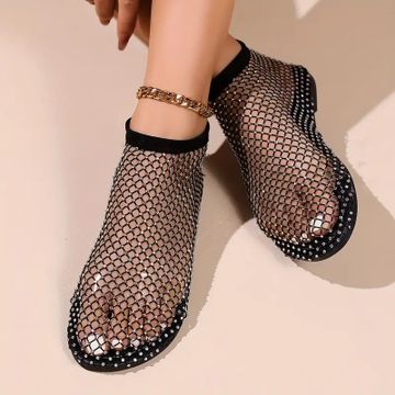 Women's Rhinestone Mesh Sandals, Hollow Out Slip On Flat Shoes