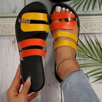Women's Colorblock Slide Sandals, Casual Open Toe Summer Shoes