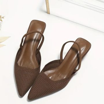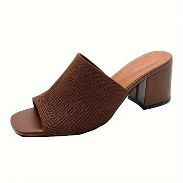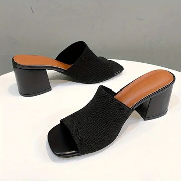 Women's Solid Color Knit Mules, Slip On Flared Heel Casual