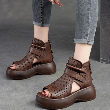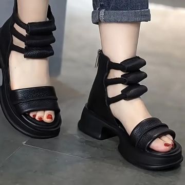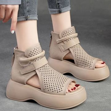 Women's Comfort Wedge Sandals, Soft Sole Platform Back Zipper Walking Shoes