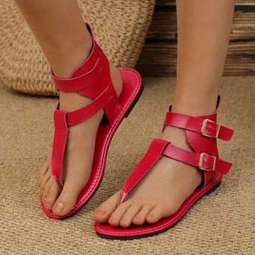 Women's Toe-Loop Flat Sandals, Retro Style Buckle Flat Shoes