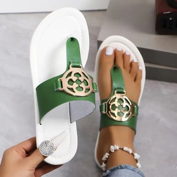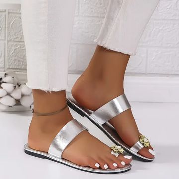 Women's Slide Sandals With Golden Accents, Fashion Toe Loop