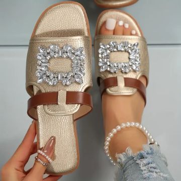 Women's Rhinestone Decor Slide Sandals, Stylish Loop Toe Beach Shoes