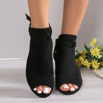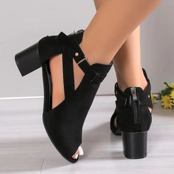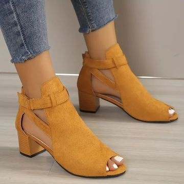 Women's Chunky Heeled Sandals, Peep Toe Solid Color Cut-out Back