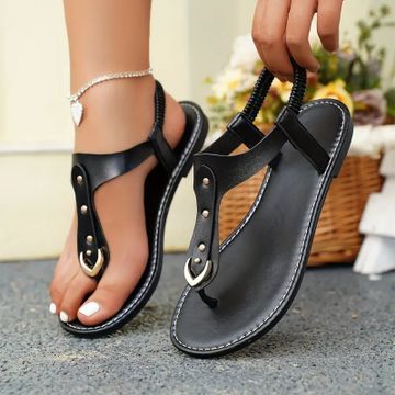 1 Pair Women'S Summer Casual Flat Sandals with Beaded Roman