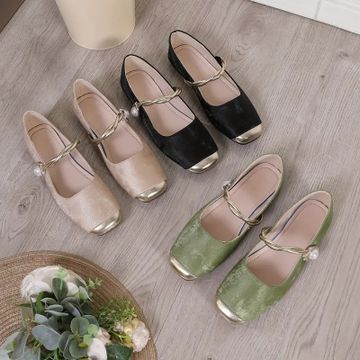 Women's Open Toe Flat Sandals, Faux Pearl Metallic Ankle Strap
