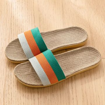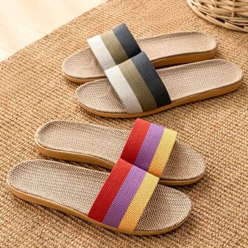 Striped Fabric Slippers for Women, Casual Slip-on Slide Sandals