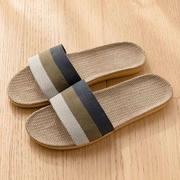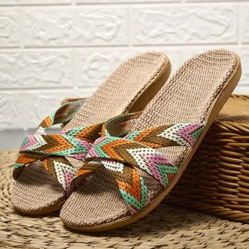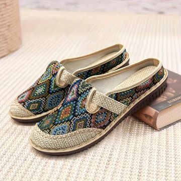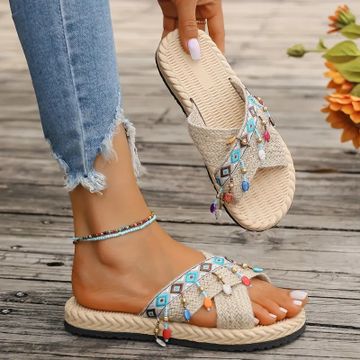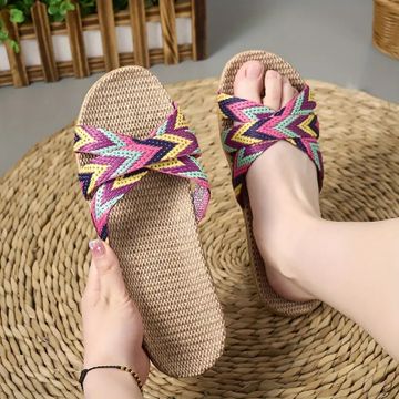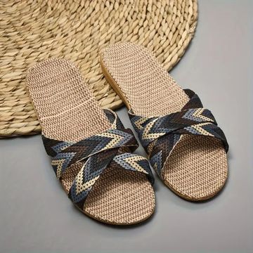 Boho-Chic Women's Linen Slide Sandals - Open Toe, Flat Heel with EVA Sole