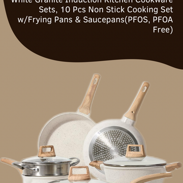 CAROTE Pots and Pans Set Nonstick, White Granite Induction Kitchen Cookware Sets, 10 Pcs Non Stick Cooking Set w/Frying Pans & Saucepans(PFOS, PFOA Free)
