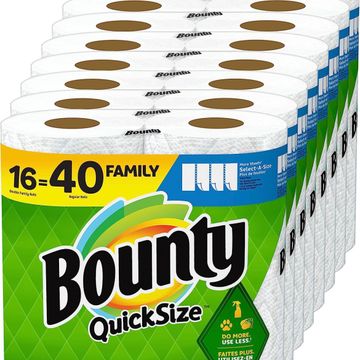 Bounty Quick-Size Paper Towels, White, 16 Family Rolls = 40 Regular Rolls