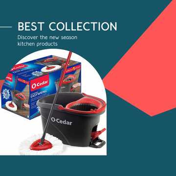 O-Cedar EasyWring Microfiber Spin Mop, Bucket Floor Cleaning System, Red, Gray