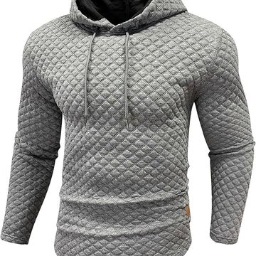 HYPESTFIT Mens Diamond Quilted Hoodies Casual Hooded Sweatshirts Long Sleeve Pullover