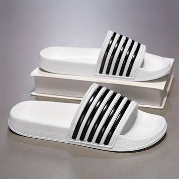 Men's Slip On Open Toe Casual Slippers, Non Slip Striped Trendy Outdoor