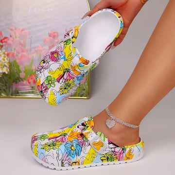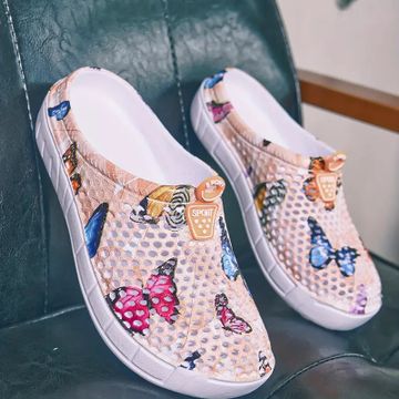 Women's Butterfly Pattern Summer Clogs, Hole Slippers