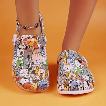 Women's Cartoon Decor Clogs, Stylish Summer Funny Beach Slide