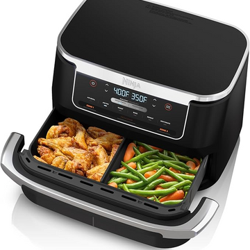 Ninja DZ071 Foodi 6-in-1 FlexBasket Air Fryer, 7-QT Capacity with Basket Divider, Smart Finish, Black