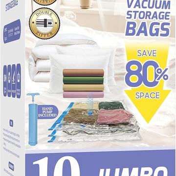 10 Pack Jumbo Vacuum Storage Bags, Space Saver for Clothes & Bedding