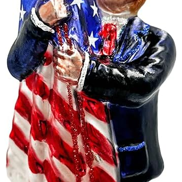 Donald Trump Kissing American Flag Glass Christmas Ornament