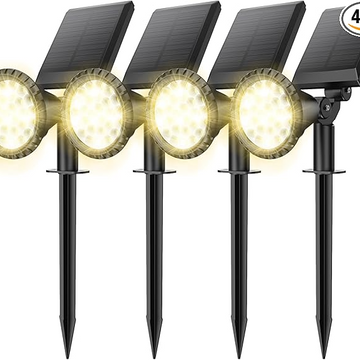 4 Pack Solar Spot Lights, 27 LED Waterproof Outdoor Lights for Yard, Garden, Pathway (Warm White)