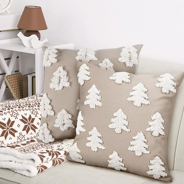 Mixweer 2 Pcs Christmas Pillow Covers, 18x18 Inch, Tufted Xmas Tree Embroidery