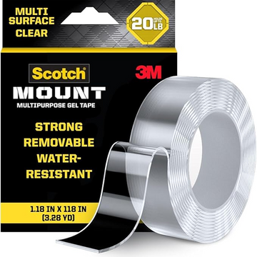 Scotch-Mount Gel Tape, 1.18 in. x 9.8 ft, Double-Sided, Removable, Water-Resistant, Holds Up to 20 lbs