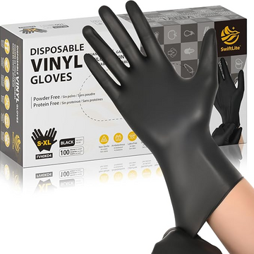 Black Vinyl Gloves, Disposable, Food Grade, Latex & Powder Free, for Cleaning & Food Prep