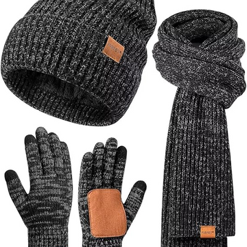 Winter Beanie Hat, Scarf, and Touch Screen Gloves Set - Warm Knit Fleece for Adults