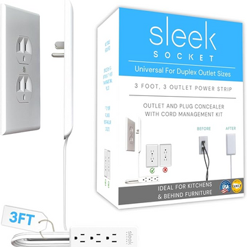 Sleek Socket Ultra-Thin Outlet Concealer with 3-Foot Extension Cord and Power Strip