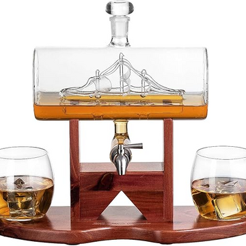 Whiskey decanter set, crystal glass, 1250ml ship, 2 glasses, gift.