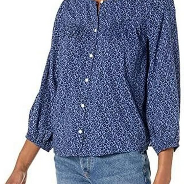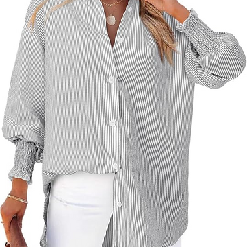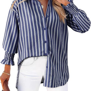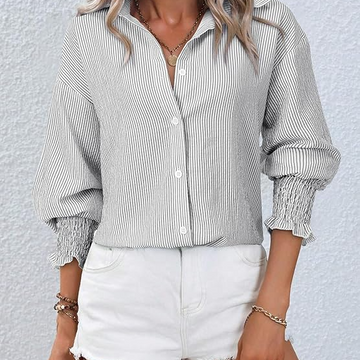 Women's Smocked Cuffed Striped Boyfriend Shirt