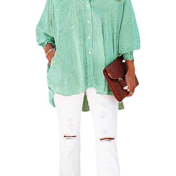Women's Striped Button Down Shirts Puff Sleeve Oversized Blouses Boyfriends Loose Tunics Business Work Tops
