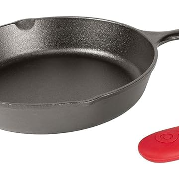 Lodge Cast Iron Skillet with Red Silicone Hot Handle Holder, 12-inch