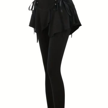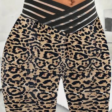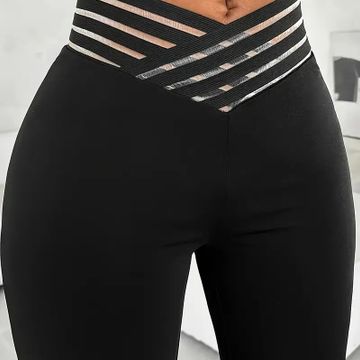 Elegant High-Waist Cross Detail Transparent Mesh Patchwork Pants