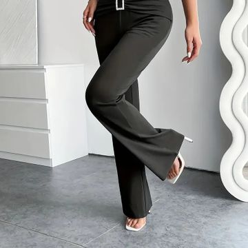 Women'S High-Waist Flare Leg Pants, Solid Color with Rhinestone Detail