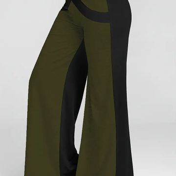 Color Block Wide Leg Pants, Casual Loose Pants For Spring
